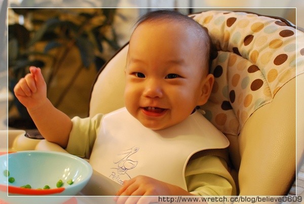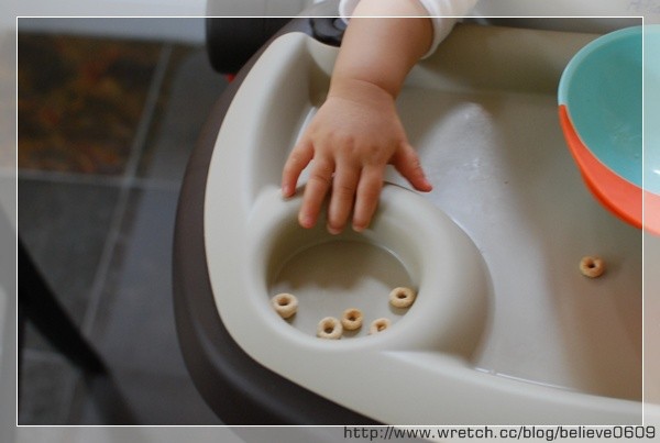 後來他技術好了 細動作更靈活 就吃磨牙餅 青豆 cheerios 麵線 麵包丁
