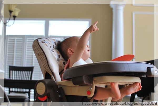 最近常出現的動作 手指著天花板 兩隻腳丫要摳在餐椅的邊邊
